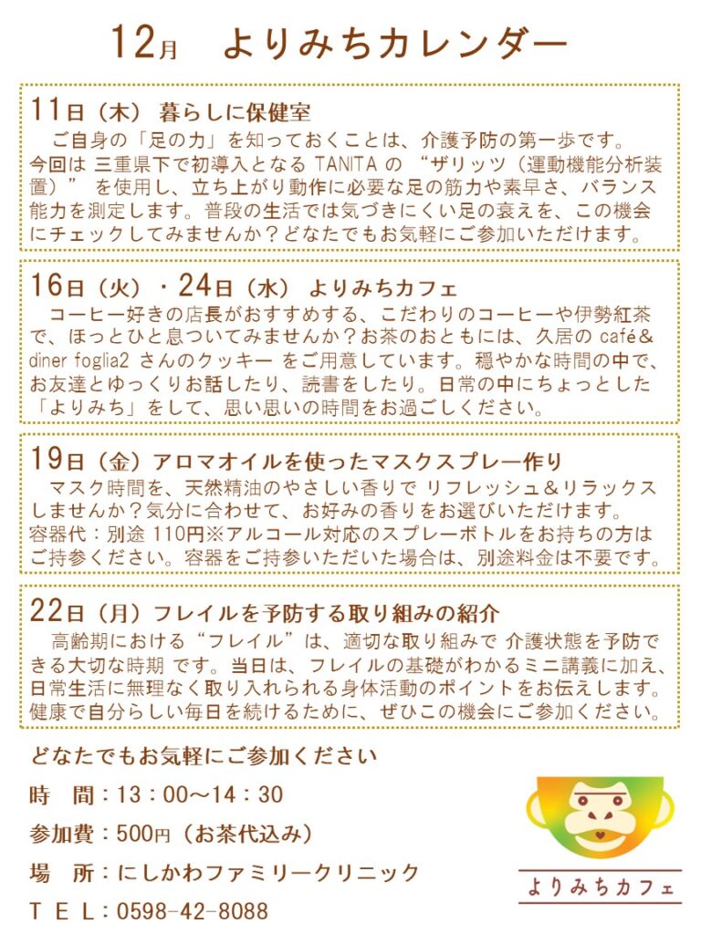 12月も地域の皆さまが気軽に立ち寄れる“よりみちイベント”を開催します。